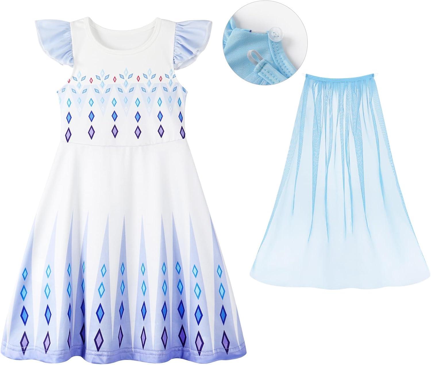 WonderBabe Princess Dress With Cape Girls Halloween Birthday Party Cosplay Costume Toddler Ruffle Sleeve Fancy Outfit Gift(White)